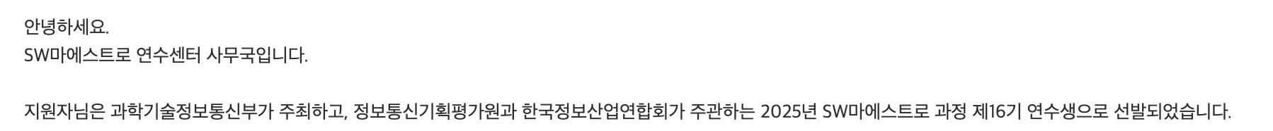다행히도 합격하여 소프트웨어 마에스트로 16기에 참여하게 되었습니다.