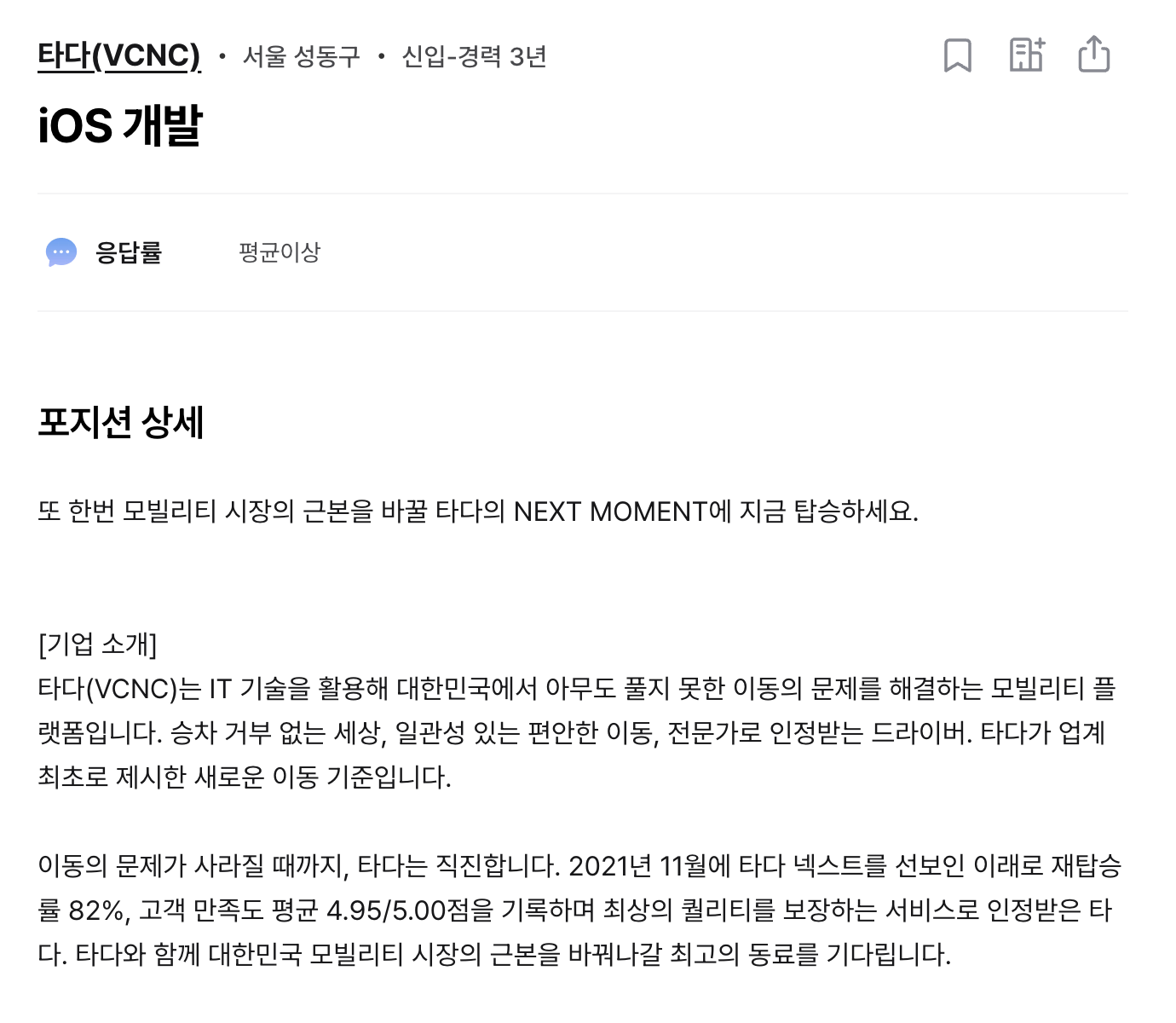 결과적으로는 2개 회사에 동시 합격하게 되었는데, 첫 번째로 합격 소식을 받은 회사가 타다(VCNC)였습니다.